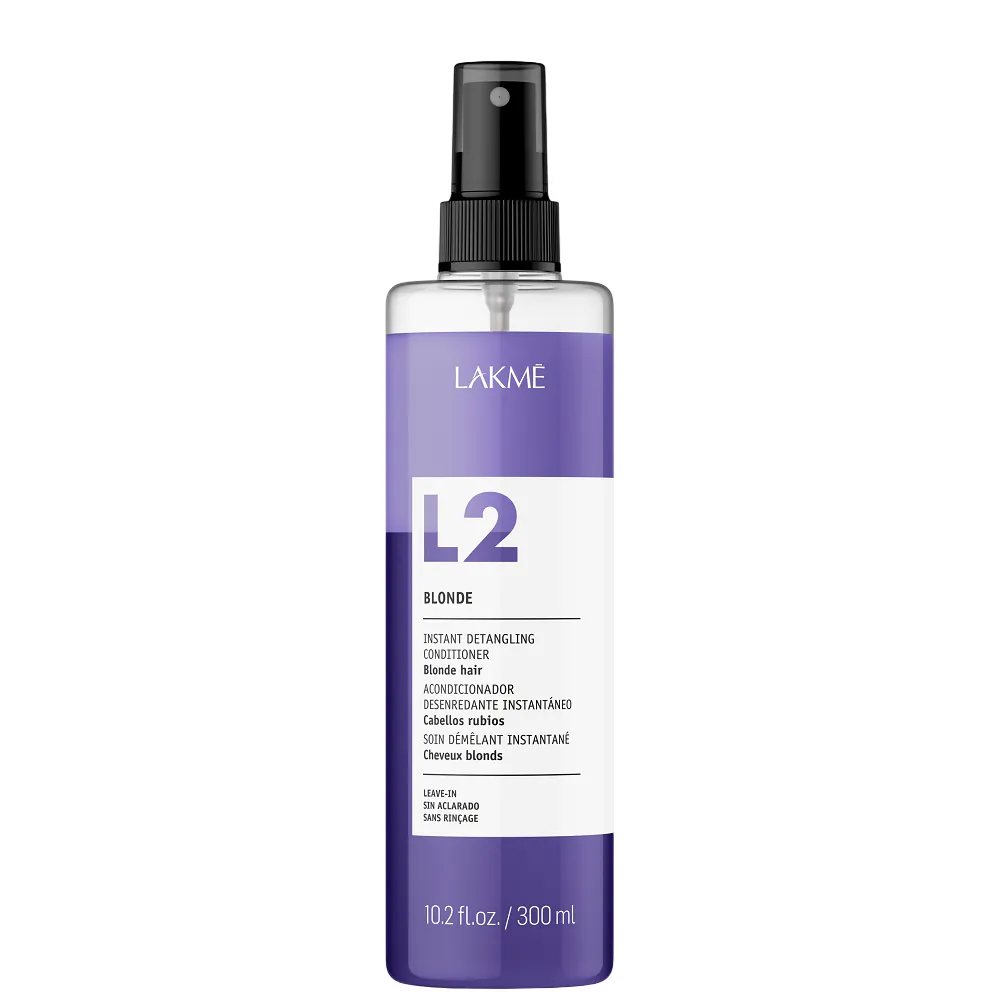 Двофазний кондиціонер BLONDE L2 спеціально розроблений для догляду за знебарвленим, мелірованим або сивим волоссям. Завдяки вмісту фіолетових пігментів, він нейтралізує жовті відтінки, підсилює холодні тони та надає волоссю чистий, сяючий вигляд. Засіб полегшує процес розчісування, укладання та створення зачісок. Волосся зберігає форму, м’якість і пружність — незалежно від погоди. Особливості продукту: Двофазний кондиціонер для освітленного або сивого волосся (з фіолетовим пігментом), 300 мл 45542 Instant detangling conditioner BLONDE L2 LAKME Активні компоненти: мінеральний силікон, молочна кислота, катіонні полімери, фіолетовий пігмент. Застосування: Двофазний кондиціонер для освітленного або сивого волосся (з фіолетовим пігментом), 300 мл 45542 Instant detangling conditioner BLONDE L2 LAKMEДвофазний кондиціонер для освітленного або сивого волосся (з фіолетовим пігментом) Instant detangling conditioner BLONDE L2 LAKME