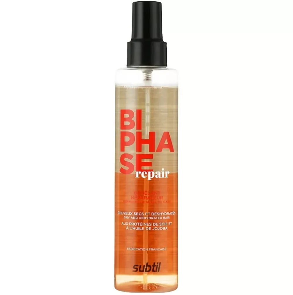 Спрей для полегшення розчісування Biphase REPAIR Spray від бренду Subtil – це двофазний засіб, призначений для сухого та зневодненого волосся. Він відновлює оптимальний рівень зволоженості локонів, інтенсивно живить їх та розгладжує розпушені волосяні кутикули. Засіб робить пасма більш слухняними, стимулює процеси відновлення пошкоджень та має захисні властивості. Особливості Biphase Repair від бренда Ducastel Subtil: Спосіб застосування: струсити, розпилити з невеликої відстані на вологе або сухе волосся.Двофазний спрей для сухого та зневодненого волосся Biphase REPAIR Spray Color Lab Subtil