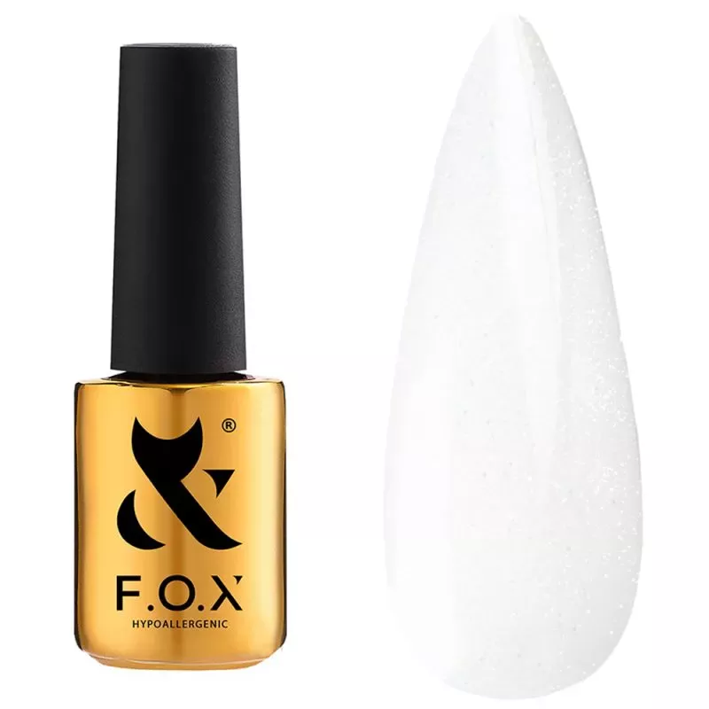 Cover Base Shimmer — це колекція камуфлюючих баз із шиммером на каучуковій основі. Ніжно-пастельні відтінки приховують недоліки нігтьової пластини, надають здоровий і доглянутий вигляд нігтям. Бази також містять мерехтливий шиммер і сяючі частинки опалу, які створюють неймовірно красивий блиск. Не розтікаються та не наносяться смугами, можуть застосовуватися як базове покриття для гель-лаку або використовуватися для манікюру в техніці French. Завдяки середній консистенції бази відмінно самовирівнюються, дозволяють створити ідеальну архітектуру нігтьової пластини. Зміцнюють і вирівнюють нігтик, забезпечують покриттю міцність і еластичність. Запобігають утворенню відколів, тріщин і відшарувань. Стандартна підготовка нігтьової пластини 1. На забафлену поверхню нігтя нанести знежирюючий засіб F.O.X Nail Prep; 2. Нанести F.O.X Ultrabond F.O.X — безкислотний праймер для додаткового зчеплення; 3. На проблемні нігті рекомендується нанести тонкий шар прозорої еластичної бази (F.O.X Base Power, F.O.X Base Rubber або F.O.X Air Base) для запобігання сколів та тріщін пігментованої жорсткої бази. Полімерізувати в UV-лампі 36W — 2 хв., LED/UV — лампі 36/48W — 30-60 секунд. 4. Нанести F.O.X Cover Base Shimmer 004 в один-два шари в техніці віривнювання та зміцнення нігтів, полімеризувати в UV-лампі 36W — 2 хв., LED/UV-лампі 36/48W — 60 сек. Ніготь готовий до покриття гель-лаком або топом. Після полімеризації топу нанести масло для кутикули F.O.X Dry Cuticle Oil Oasis. Видаляється за допомогою засобу F.O.X Gel Remover 10 хв. або апаратом. Технологія застосування: