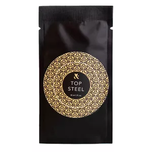 Завдяки збалансованій консистенції Top Steel легко розподіляється на поверхні нігтя, не затікаючи на бокові валики.
