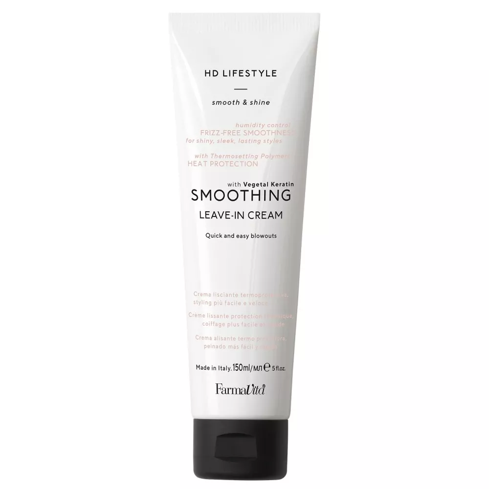 SMOOTHING LEAVE-IN CREM HD FarmaVita Випрямляючий термозахисний крем для волосся середньої фіксації Чудовий крем для моделювання неслухняного волосся, робить його гладким і прямим. Ідеальний засіб для створення гладкої відполірованої поверхні волосся. Збагачений екстрактом лаванди, що надає додатковий блиск і Провітаміном B5 для зміцнення і поліпшення структури волосся. Для досягнення максимального ефекту продукт необхідно використовувати в комплексі з шампунем і маскою лінії Smooting. Ідеально підходить для гарячого укладання. Застосування: