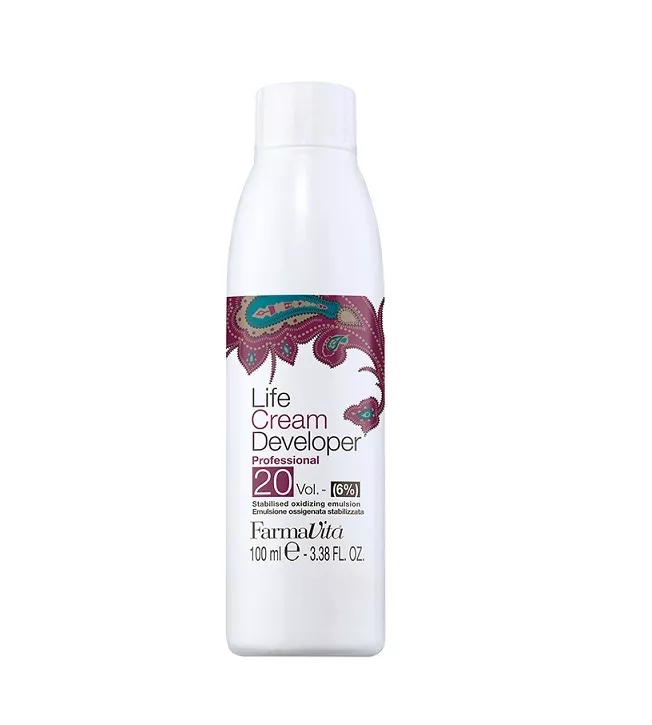 - DEVELOPER FARMAVITA Окислююча емульсія з бальзамом та антистатичними добавками Композиція, яка застосовується у всіх випадках, коли необхідна хімічна реакція окислення (при фарбуванні і знебарвленні). Склад спеціально розроблений для захисту волосся від агресивного впливу хімічних речовин (містить антистатик і бальзам). Дозування 20 vol. (6%), 30 vol. (9%), 40 vol. (12%): При косметичному фарбуванні змішується 1: 1,5. Для отримання більш насиченого кольору змішується 1: 1. При використанні суперблондов використовуйте співвідношення 1: 2. Дозування 10 vol. (3%): фарбування тон в тон і затемнення - змішується 1: 1,5. тонування - змішується 1: 2 з будь-якою фарбою. Tonе On Tone (1,5%) використовується для тонування темного і світлого волосся особливо застосовується в роботі з блондом. Працює з аміачними і безаміачними барвниками, змішується 1: 2.