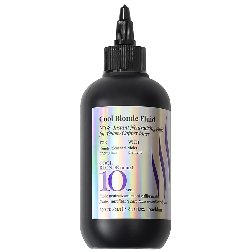 Флюїд-ополіскувач від FarmaVita спеціально створений для нейтралізації небажаних жовтих і мідних відтінків на світлому волоссі. Засіб діє миттєво, робить колір більш чистим, холодним та благородним. Це професійний продукт лінії BACK BAR, який дозволяє підтримувати бездоганний блонд між процедурами фарбування. Формула СOOL BLONDE FLUID №08 збагачена активними компонентами, які не лише тонують, а й доглядають за волоссям. Засіб вирівнює структуру, додає блиску та м’якості, зберігає еластичність і захищає від пересушування. Завдяки легкій текстурі флюїд рівномірно розподіляється по довжині, не обтяжує волосся та робить його слухняним. Особливості продукту: Флюїд-ополіскувач для нейтралізації жовтих та мідних відтінків блонду, 250 мл СOOL BLONDE FLUID №08 BACK BAR FarmaVita Застосування: Флюїд-ополіскувач для нейтралізації жовтих та мідних відтінків блонду, 250 мл СOOL BLONDE FLUID №08 BACK BAR FarmaVita Для мідних та жовтих відтінків: нанесіть невелику кількість флюїду на чисте вологе волосся після миття. Розподіліть по довжині, залиште на кілька хвилин для нейтралізації після чого змийте водою. Для більш інтенсивного ефекту можна збільшити час витримки. Для дуже світлого блонду : змішати флюїд СOOL BLONDE FLUID №08 BACK BAR FarmaVita з водою в пропорції від 1:3 до 1:20. Ополоснути волосся. Важливо! Продукт містить прямий пігмент. Інтенсивність нейтралізації визначається візуальним контролем майстра.Флюїд-ополіскувач для нейтралізації жовтих та мідних відтінків блонду СOOL BLONDE FLUID №08 BACK BAR FarmaVita