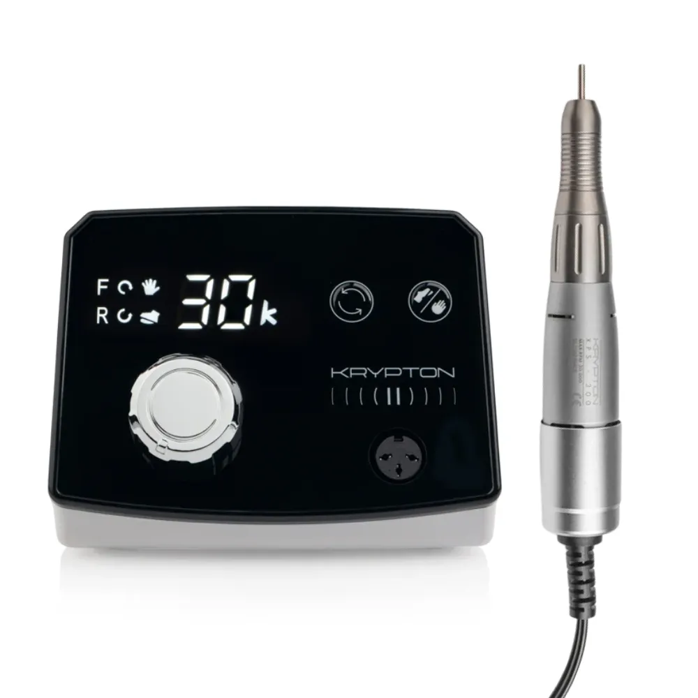 Фрезер KRYPTON II з полегшеною ручкою XPS-300 — новий рівень комфорту та ефективності в професійному манікюрі. Це вдосконалена модель, яку вже оцінили майстри. Потужність 70 Вт та швидкість до 30 000 об/хв забезпечують ідеальний результат як у манікюрі, так і в педикюрі. Полегшена ручка XPS-300: Вага всього 165 г Зменшення навантаження на кисть Тонкий, зручний корпус Механізм SmartLock — подвійна фіксація фрези для максимальної стабільності та зменшення вібрацій Функції, що підвищують продуктивність: EASY CONTROL — перемикання напрямку обертів без зупинки FREE FOOT — інтелектуальне ножне керування з функцією паузи PROTECTION+ — захист від перевантажень та помилок Зручність у деталях: Компактний блок з LED-дисплеєм Всі кнопки керування під рукою Тримач ручки під кутом — запобігає ударам фрези об стіл Більше місця для зберігання насадок прямо на корпусі Комплектація: Блок живлення Ручка-мікромотор Педаль Тримач ручки Інструкція, гарантійний талон, лист-застереження Технічні характеристики: Потужність: 70 Вт Швидкість: до 30 000 об./хв. Обертаючий момент: 3 Н/см Вага: 1325 г Розміри: 12 ? 14.7 ? 8.8 см Гарантія: 24 місяці Сертифікований в Україні та ЄС Цей фрезер — ідеальний вибір для тих, хто цінує комфорт, потужність і надійність.