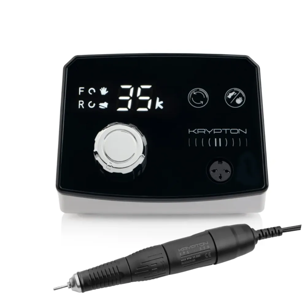 Bucos Krypton II XPS-350 — це сучасний фрезер для апаратного манікюру та педикюру. Нова модель на ринку nail-індустрії відрізняється не лише високими технічними характеристиками, а й стильним дизайном. Вона призначена для професійного використання, включаючи роботу з манікюром, педикюром, видалення нарощених нігтів і будь-яких покриттів на нігтьовій пластині, видалення кутикули, мозолів і грубої шкіри. Це безпечна альтернатива обрізному манікюру. ПОТУЖНІСТЬ І ШВИДКІСТЬ Bucos Krypton II XPS-350 White/Black має потужність 70 Вт і може досягати швидкості до 35 000 оборотів на хвилину з крутним моментом 3.0 Н/см. Цих характеристик вистачає для швидкого зняття довжини та формування нігтів із твердих матеріалів, таких як акрил і гель. Пристрій оснащений тихим мотором і ручкою без вібрації, що забезпечує рівномірне й гладке оброблення поверхні нігтя без хвилястого ефекту. Прилад працює від мережі 220 В і має додаткові функції, які розглядаються далі. EASY CONTROL Функція автоматичного перемикання напрямків Форвард/Реверс під час роботи. Під час роботи з Кріптон II можна змінювати напрямок обертання фрези одним натисканням кнопки, а процесор пристрою автоматично здійснить усі необхідні налаштування. Це дозволяє економити час майстра та клієнта, а також зменшує ризик поломки приладу. FREE FOOT У багатьох фрезерах ручка працює лише при натисканні на педаль, що може бути незручним. У Krypton II педаль також виконує функцію паузи: під час роботи ви встановлюєте потрібну швидкість, натискаєте на педаль один раз і працюєте. Щоб зробити паузу, потрібно знову натиснути на педаль. Після ще одного натискання прилад продовжить працювати з попередніми налаштуваннями швидкості. PROTECTION+ Покращена функція захисту від перевантаження захищає фрезер від пошкоджень у разі неправильної установки фрези або при використанні важкої фрези на високих оборотах. Пристрій автоматично визначає межу перевантаження і зупиняє роботу, показуючи код помилки Е4 на дисплеї. Це запобігає поломці мікромотора або затискача. ДИЗАЙН І УПРАВЛІННЯ Bucos Krypton II XPS-350 має компактний і функціональний дизайн, який ідеально підходить для робочого місця. На корпусі збільшено кількість отворів для фрез, що дозволяє тримати всі необхідні насадки під рукою. Фрезер простий у використанні та інтуїтивно зрозумілий в управлінні. Корпус виготовлений із міцного пластику, на передній панелі розташовані регулятор швидкості, дисплей і кнопки управління (реверс, ножне керування). Ручка-мікромотор зручно лежить у руці та оснащена спеціальним затискачем для швидкої зміни насадок. Тримач для ручки розташований під кутом, що запобігає биттю фрезою об стіл. Вага моделі: 1365 г. Розміри: 12 х 14.7 х 8.8 см. КОМПЛЕКТАЦІЯ До комплекту Bucos Krypton II XPS-350 White/Black входить блок живлення, ручка-мікромотор, педаль для ножного керування, тримач для ручки та супровідна документація.