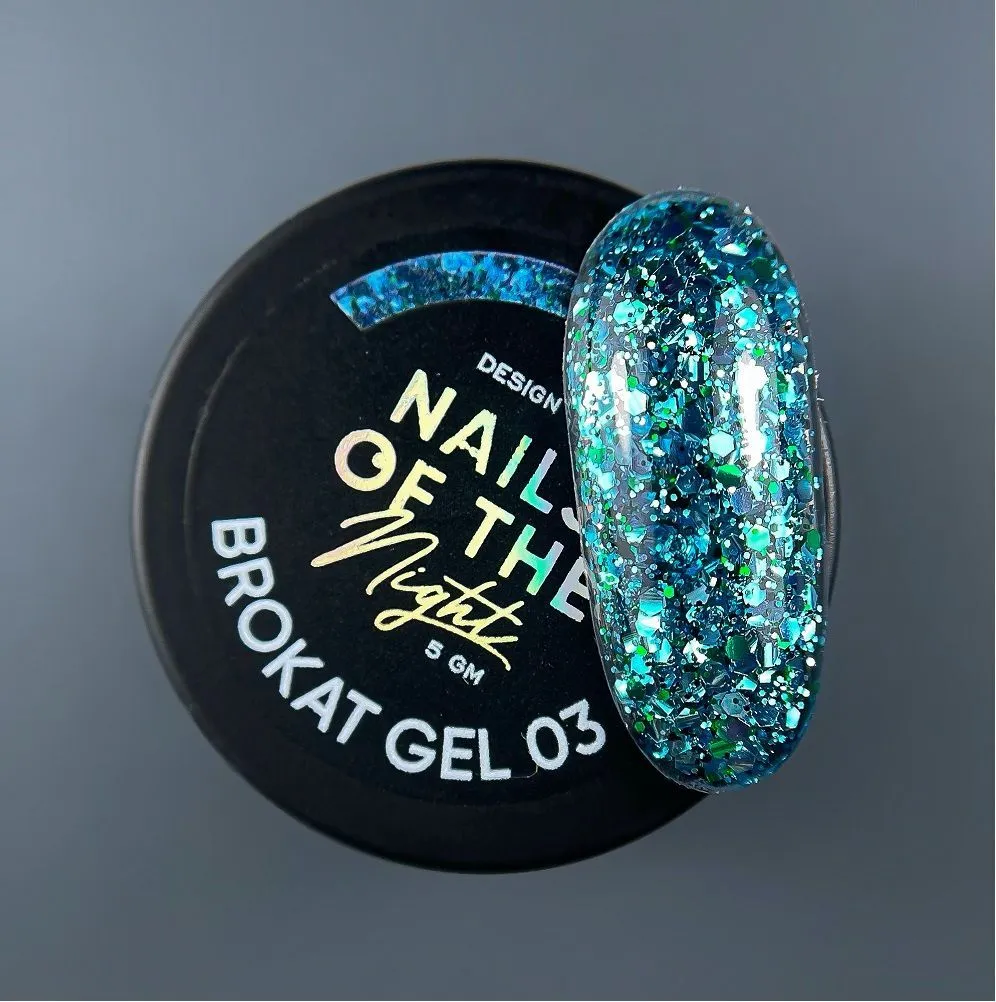 NAILSOFTHENIGHT Brokat gel — дизайн гель неперевершеної якості, що виділяється високою насиченістю різнобарвного брокату та глітеру. Особливості NAILSOFTHENIGHT Brokat gel – design gel: Використовується: Гель для дизайну з різнобарвним брокатом та глітером для нігтів Brokat Gel NAILSOFTHEDAY Технологія застосування: Гель для дизайну з різнобарвним брокатом та глітером для нігтів Brokat Gel NAILSOFTHEDAY Гель для дизайну з різнобарвним брокатом та глітером для нігтів Brokat Gel NAILSOFTHEDAY