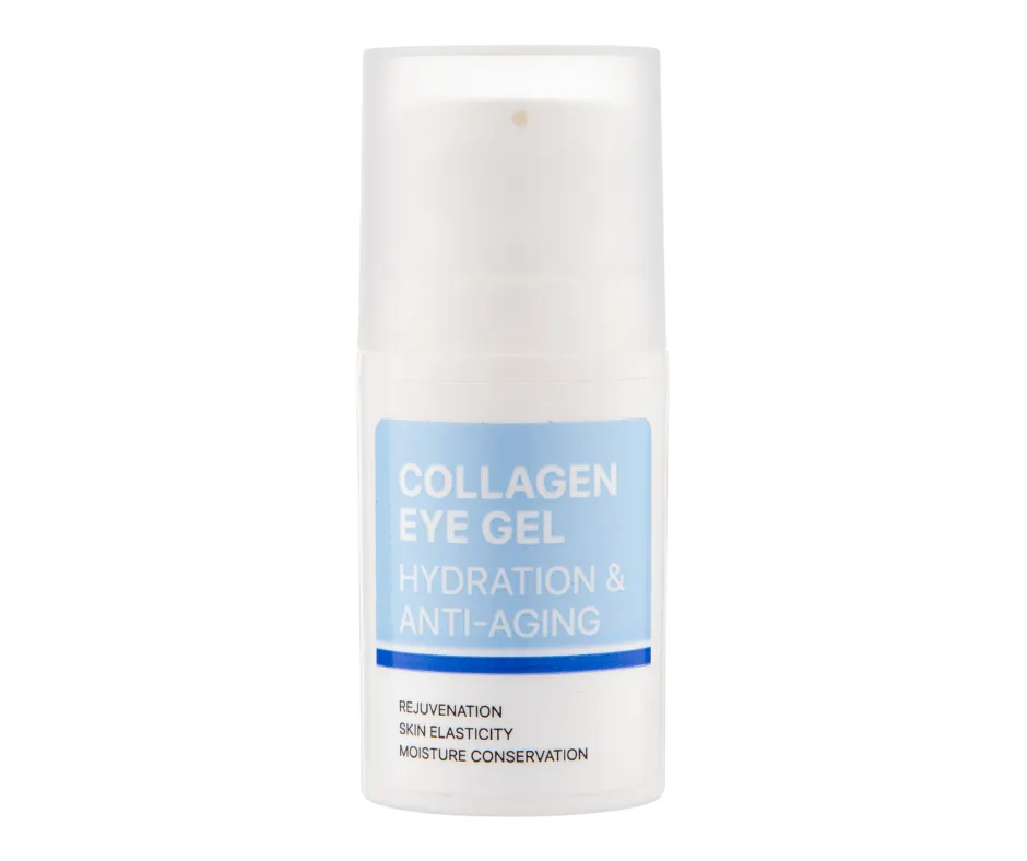 Гель Collagen Eye Gel hydration & anti-aging забезпечує ефективний догляд за делікатною шкірою навколо очей. Легка текстура гелю швидко проникає в шкіру, не залишаючи плівки і жирних слідів. Формула гелю містить наступні активні інгредієнти: Спосіб застосування: нанести гель на область навколо очей. Для досягнення найкращого результату використовуйте гель зранку та ввечері. Застереження: тільки для зовнішнього застосування. Уникати потрапляння всередину, в очі та на слизову. У разі потрапляння промити великою кількістю холодної води та в разі потреби звернутися до лікаря. Умови зберігання: зберігати при температурі повітря від +15 С до +25 С у закритій упаковці. Захищати від попадання прямих сонячних променів. Тримати подалі від дітей. Склад: Water, Glycerin, PEG/PPG-17/6 Copolymer, Niacinamide, Collagen, Centella Asiatica Extract, Portulaca Oleracea Extract, Hamamelis Virginiana (Witch Hazel) Bark/Leaf/Twig Extract, Soluble Collagen, Hydrolyzed Collagen, Collagen Amino Acids, Butylene Glycol, Propanediol, C12-14 Pareth-12, Hydroxyacetophenone, 1,2-Hexanediol, Adenosine, Disodium EDTA, Carbomer, Sodium Polyacrylate, Fragrance.Гель для шкіри навколо очей з коллагеном Collagen Eye Gel hydration & anti-aging, 15 мл