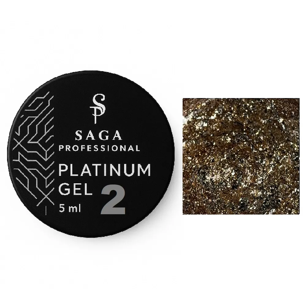 Гель-фарба з поталлю, 5 мл Колір: Золотий, металік №02 Platinum Gel SAGA Prpfessional