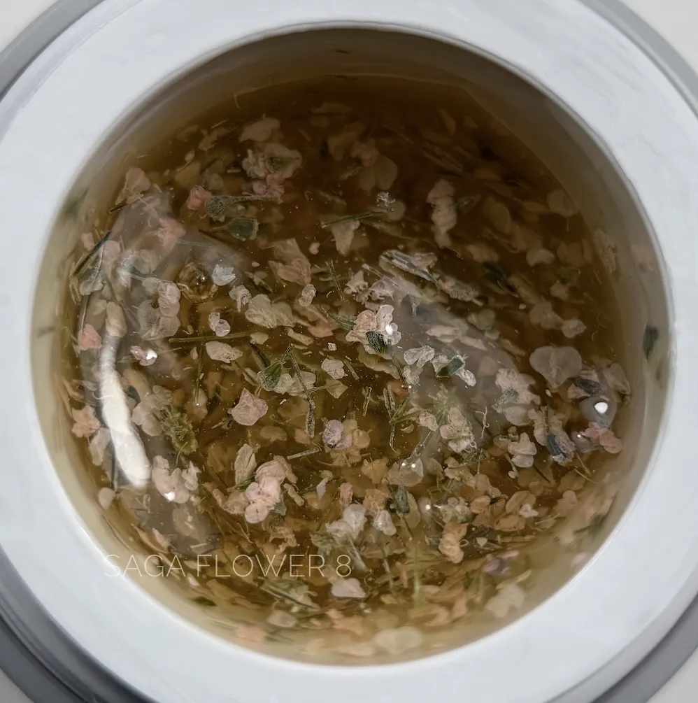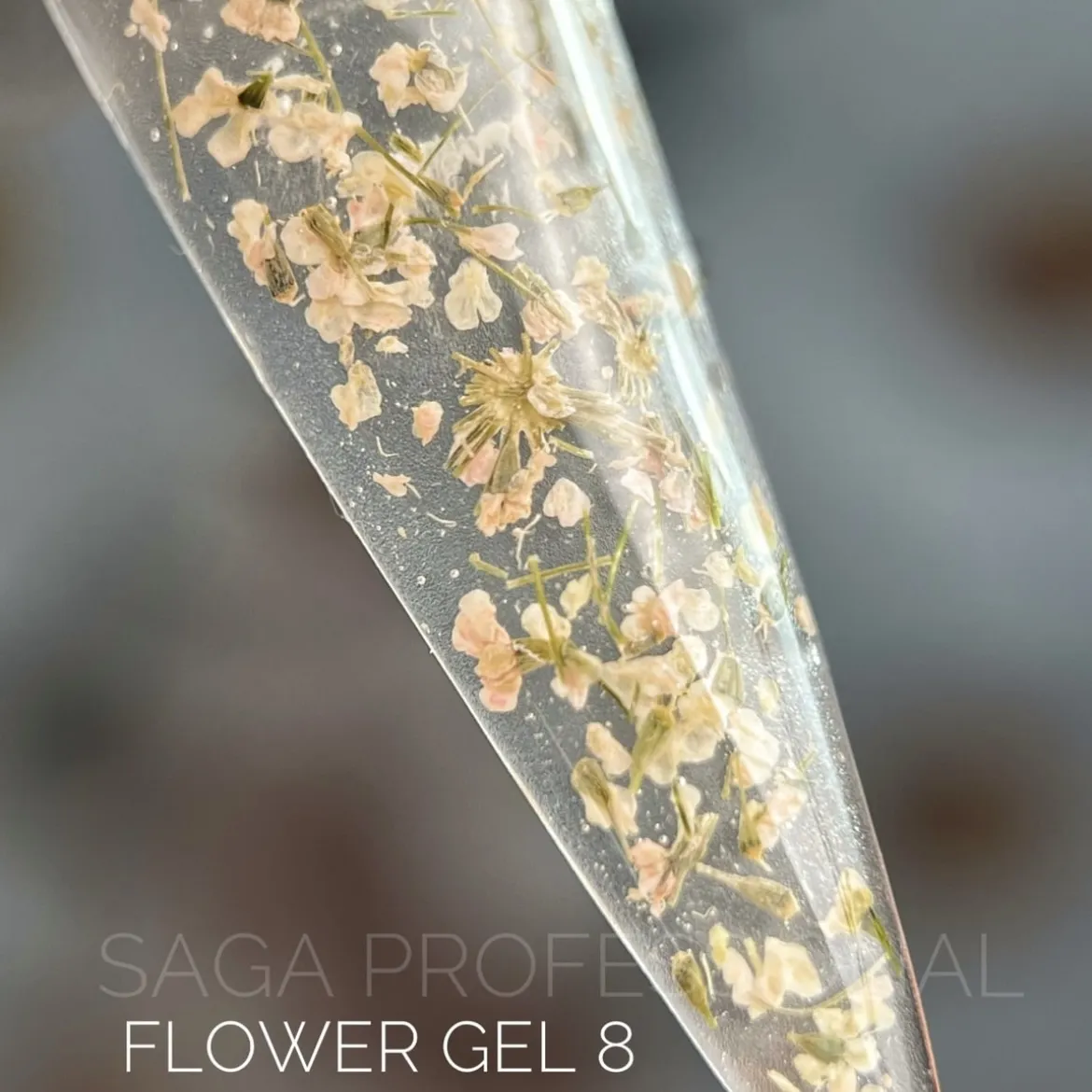 Колір Flower Fairy Gel №08 — прозорий з рожевими сухоцвітами; Saga Flower Gel — це декоративний гель із прозорою або напівпрозорою основою, наповнений об’ємними частинками, що нагадують пелюстки квітів. Ідеальний Особливості: Гель із сухоцвітами Flower Fairy Gel SAGA Professional Порада від майстра:Гель із сухоцвітами Flower Fairy Gel SAGA Professional