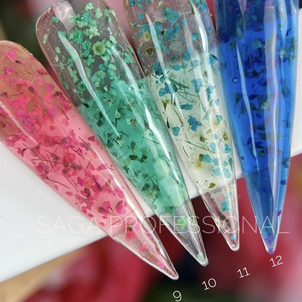 Колір Flower Fairy Gel №12 — насичено синій; Saga Flower Gel — це декоративний гель із прозорою або напівпрозорою основою, наповнений об’ємними частинками, що нагадують пелюстки квітів. Ідеальний Особливості: Гель із сухоцвітами Flower Fairy Gel SAGA Professional Порада від майстра:Гель із сухоцвітами Flower Fairy Gel SAGA Professional