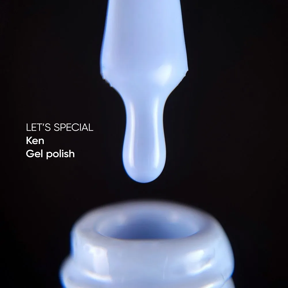 • Gel polish Ken — небесно-блакитний гель-лак, що перекривається в один шар.