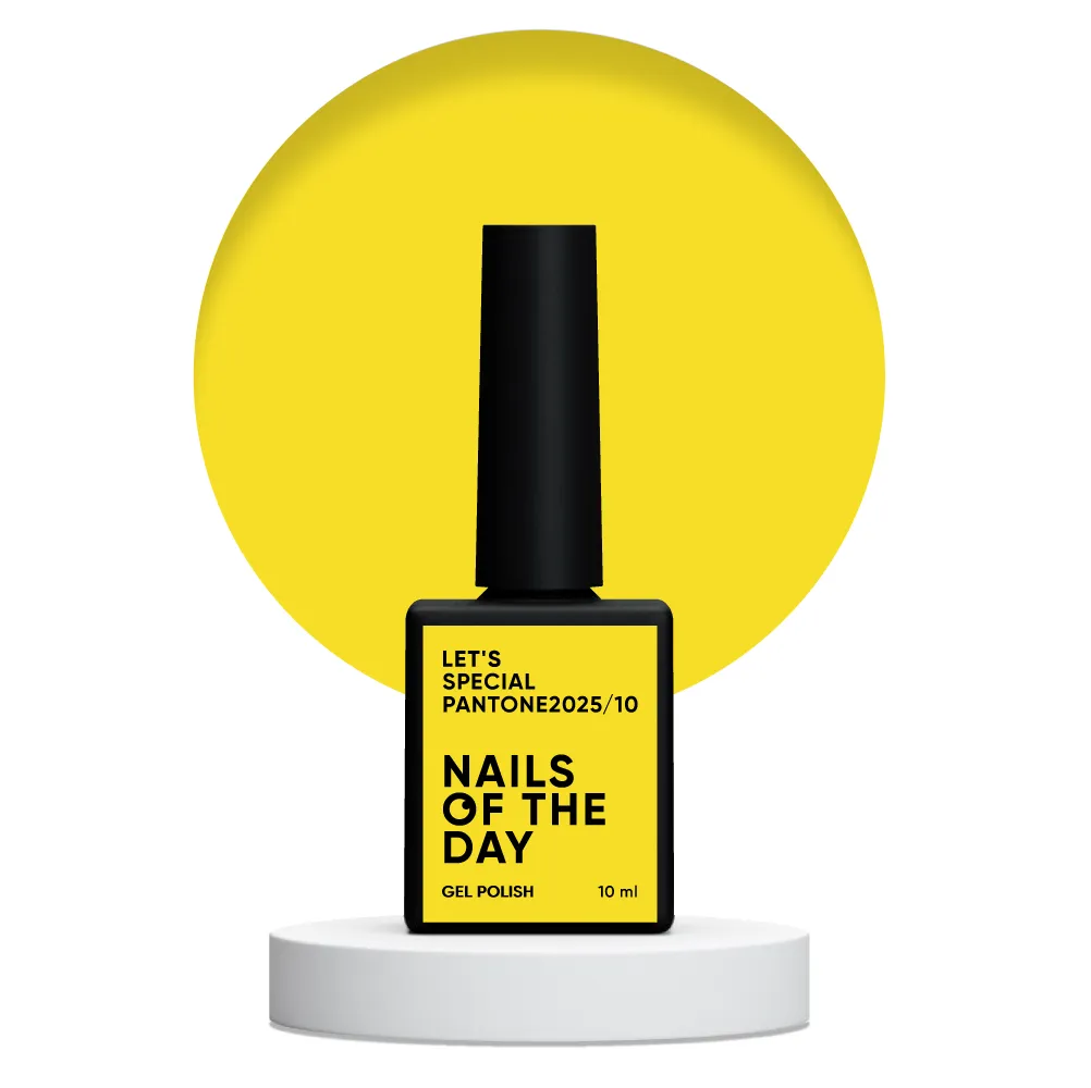 • Gel Polish Let’s special Pantone2025/10 — сонячний жовтий гель–лак для нігтів, що перекриває в один шар.