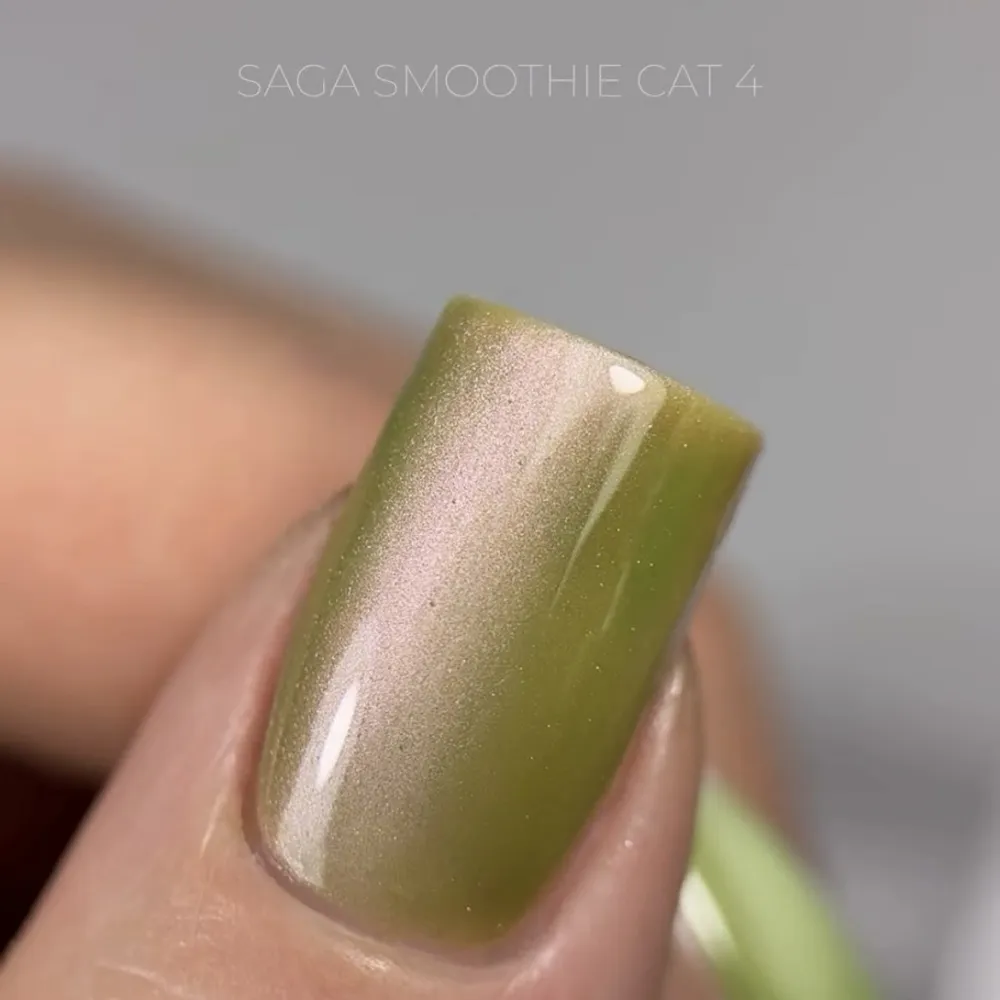 Колір гель-лаку Smoothie Cat №04 — Зелено-золотий. Асоціюється зі стиглим ківі. Це яскравий зелений відтінок із золотистим або Гель-лак SAGA Professional Smoothie Cat — це серія магнітних гель-лаків із ефектом "котяче око", натхненна яскравими соковитими фруктами, Характеристики продукту: Гель-лак кошаче око, 10 мл Smoothie Cat Gel Polish SAGA Professional Застосування та переваги: Гель-лак кошаче око, 10 мл Smoothie Cat Gel Polish SAGA Professional Деталі використання: Гель-лак кошаче око, 10 мл Smoothie Cat Gel Polish SAGA ProfessionalГель-лак кошаче око, 10 мл Smoothie Cat Gel Polish SAGA Professional