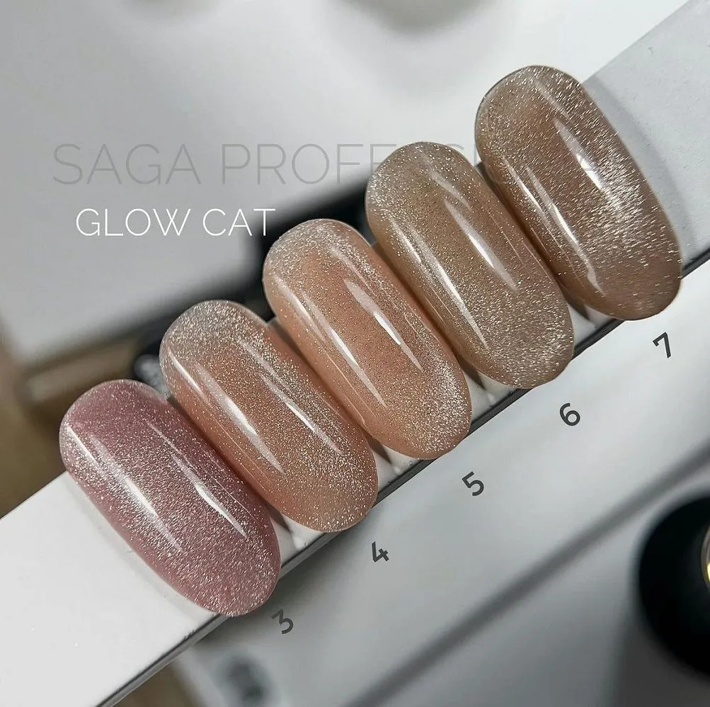 Гель-лак SAGA Professional Glow Cat — це магнітне декоративне покриття з ефектом «кришталевого котячого ока», що створює глибокий, мінливий колір із мерехтливими променями світла.