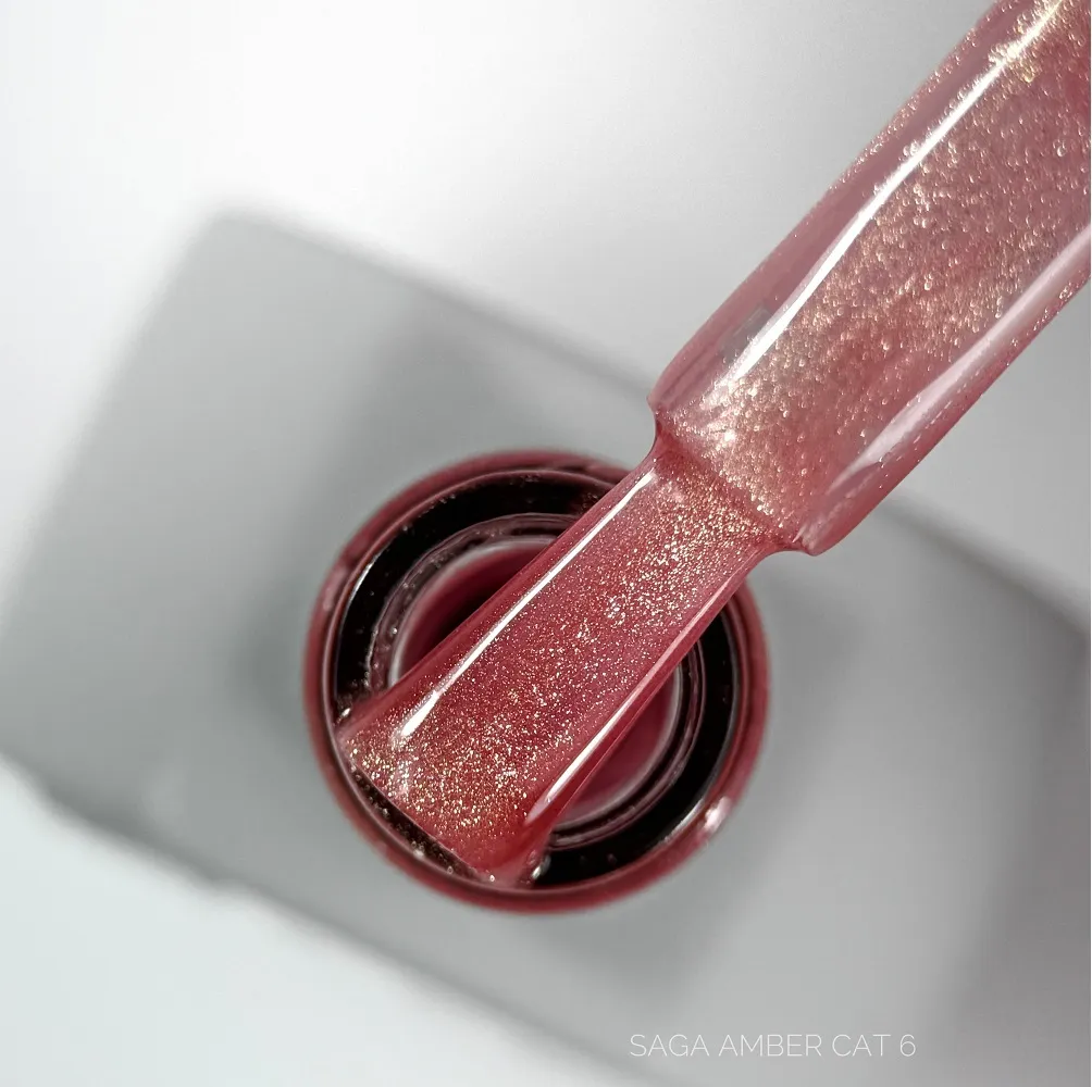 Гель лак Saga Professional Amber Cat бурштиново-рожевий входить до колекції "Янтарна кішка" покриттів з ефектом "котячого ока", що створюють неймовірно ефектні бурштинові переливи та Гель-лак SAGA містить металізовані частинки. Під впливом магніту вони переміщаються і створюють чарівні переливи. Піднісши його до покриття можна сформувати відблиск у Гель лак Saga котяче око високопігментований і щільно перекривають нігтьову пластину одним шаром. Використання підкладки опціонально, але Amber Cat чудово виглядає на Середня консистенція зручна в роботи. Магнітний гель лак Сага золотий наноситься рівномірно, не розтікається і легко розподіляється по нігтю. Текстура не затікає під кутикулу і Особливості: Гель-лак котяче око, 10 мл Amber Cat Gel Polish SAGA Professional Спосіб застосування: Гель-лак котяче око, 10 мл Amber Cat Gel Polish SAGA ProfessionalГель-лак котяче око, 10 мл Amber Cat Gel Polish SAGA Professional