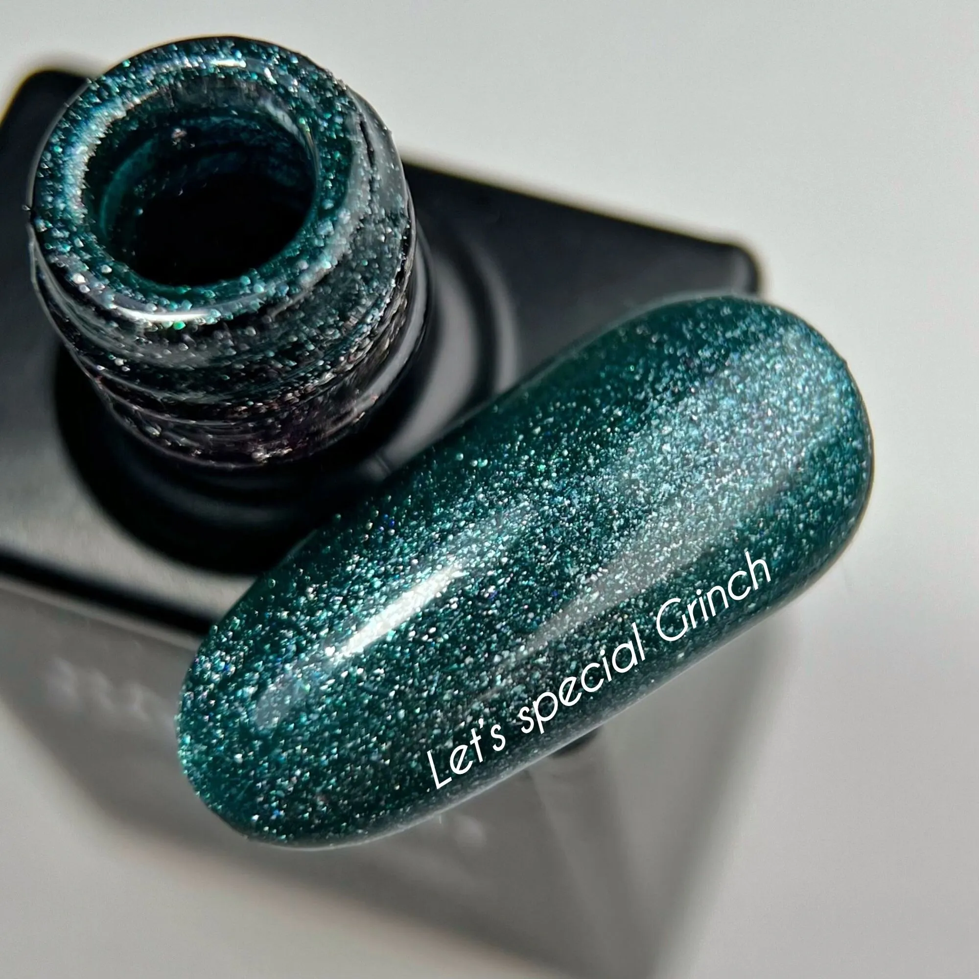 • Let’s special Grinch — смарагдово-зелений із дрібним шимером гель–лак для нігтів, що перекриває в один шар.