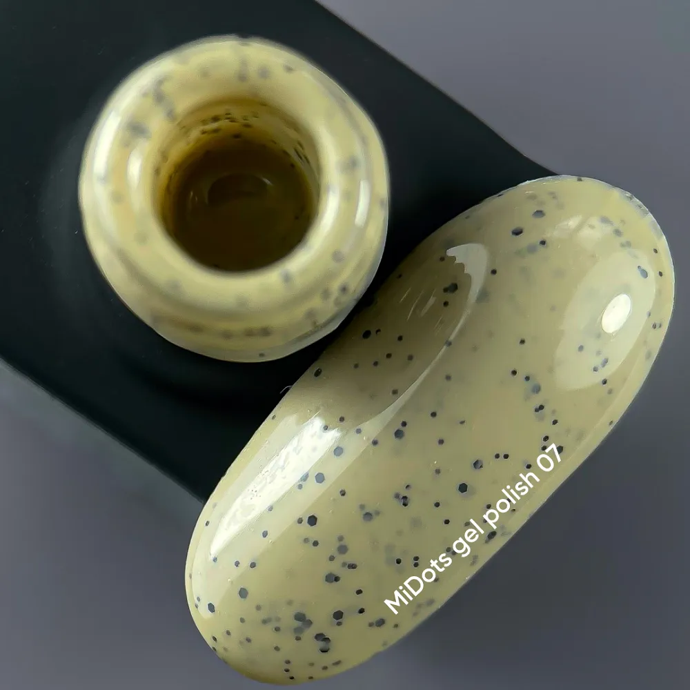 • Gel Polish MiDots №07 — молочно-фісташковий з чорними крапочками.