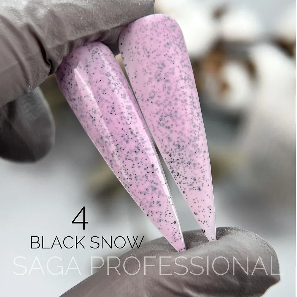 Колекція Black Snow від SAGA Professional — це унікальні гель-лаки з чорними декоративними частинками, що нагадують «чорний сніг». Ці