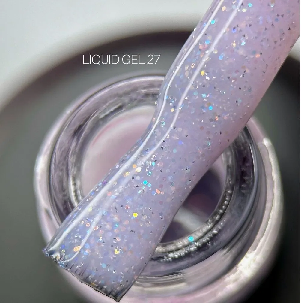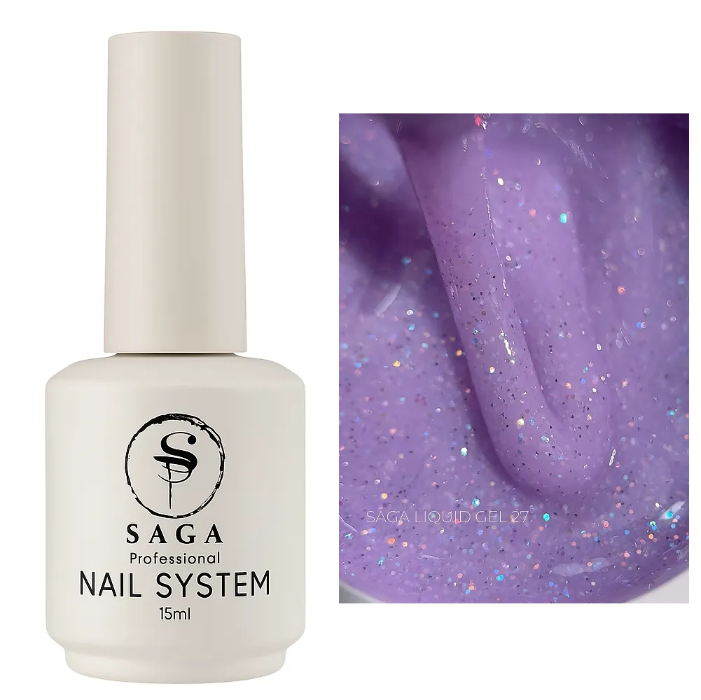• Колір Liquid Gel SAGA Professional №027— ніжно-лавандовий зі світловідбивними блискітками та шимером;