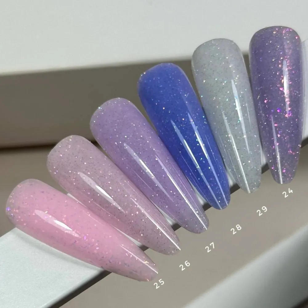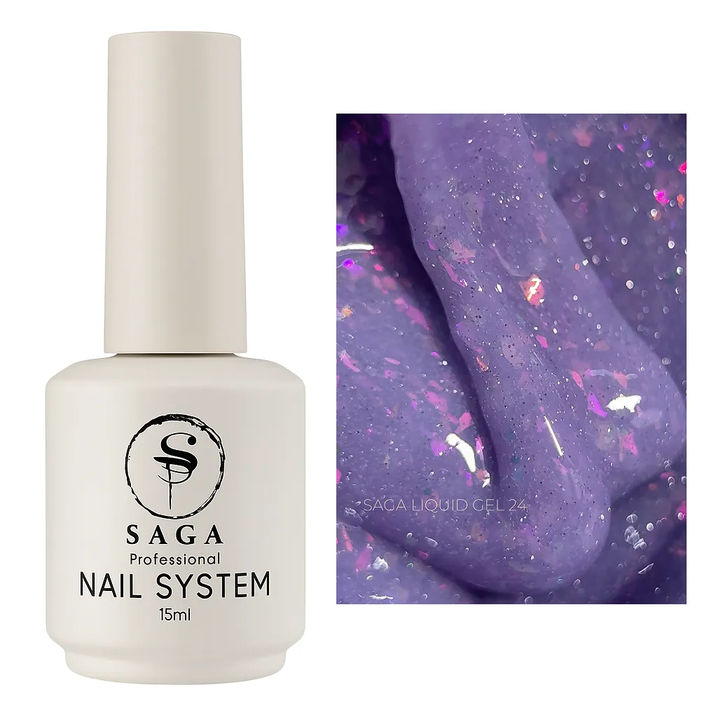 • Колір Liquid Gel SAGA Professional №024— лавандовий з мікроблиском та пластівцями;