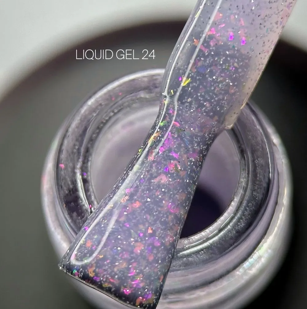 Гель рідкий для зміцнення нігтів з пластівцями світловідбиваючий, 15 мл №24 Liquid Gel SAGA Professional