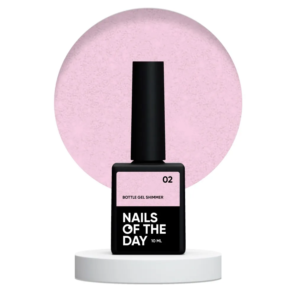 • Колір Shimmer Bottle Gel NAILSOFTHEDAY №02 — Молочно-рожевий зі срібним шимером;
