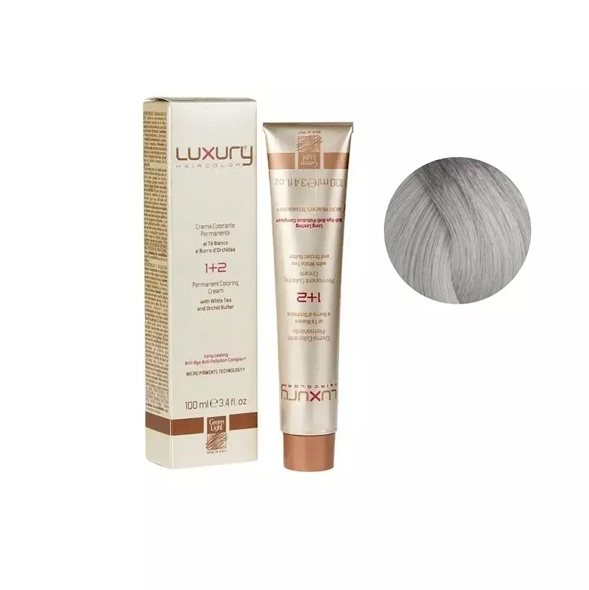 10/111 Платиновий блондин попелясто екстро інтенсивний Крем-фарба для волосся з білим чаєм та екстрактом орхідеї, 100 мл LUXURY Haircolor GREEN LIGHT