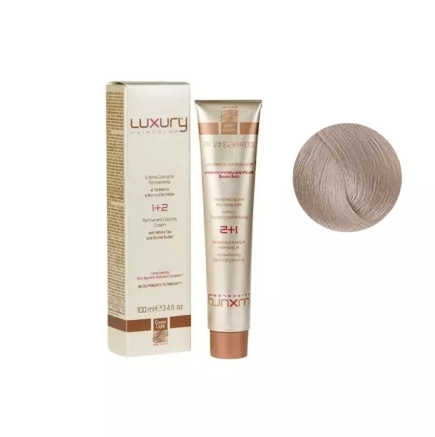10/111 Платиновий блондин попелясто екстро інтенсивний Крем-фарба для волосся з білим чаєм та екстрактом орхідеї, 100 мл LUXURY Haircolor GREEN LIGHT