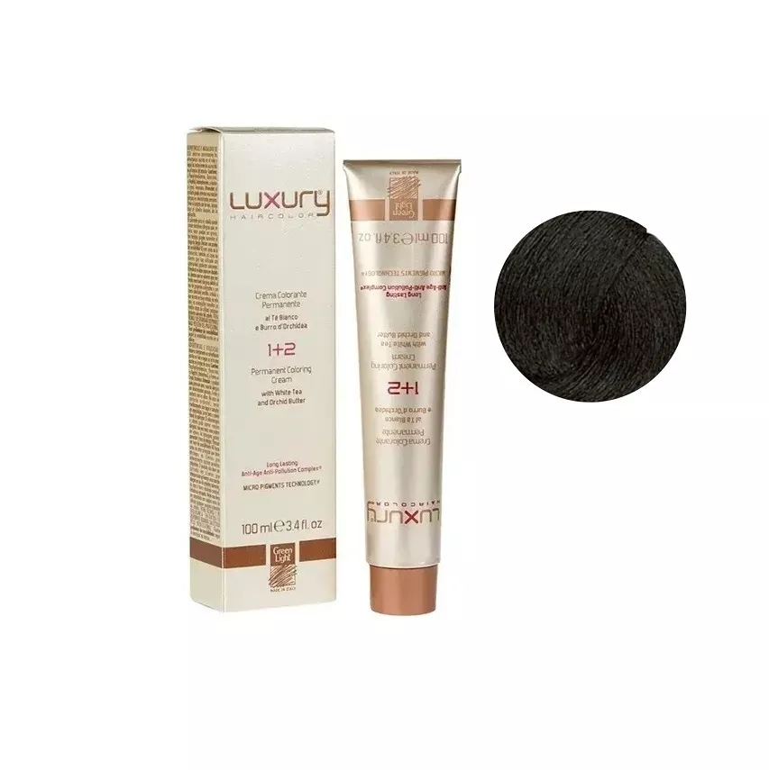 4/01 Середньо-коричневний натуральний попелястий Крем-фарба для волосся з білим чаєм та екстрактом орхідеї, 100 мл LUXURY Haircolor GREEN LIGHT