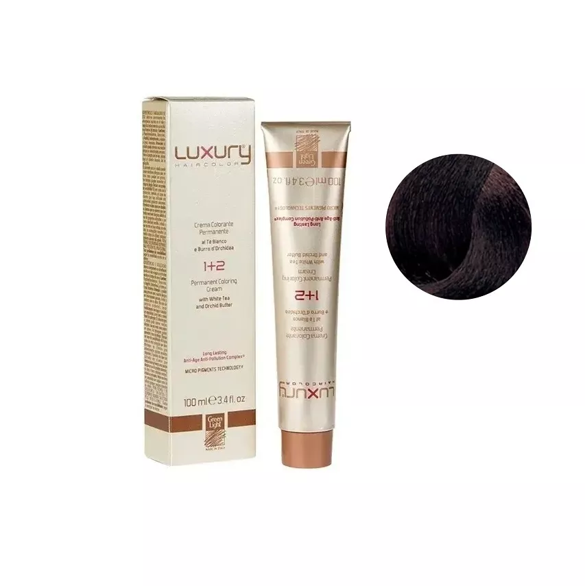 5/8 Світло-коричневий шоколадний Крем-фарба для волосся з білим чаєм та екстрактом орхідеї, 100 мл LUXURY Haircolor GREEN LIGHT