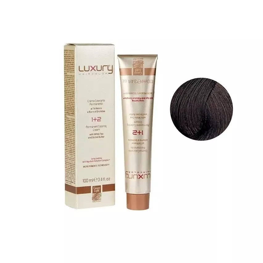 5/8 Світло-коричневий шоколадний Крем-фарба для волосся з білим чаєм та екстрактом орхідеї, 100 мл LUXURY Haircolor GREEN LIGHT