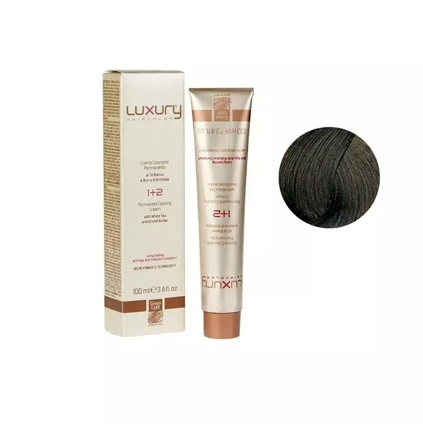 5/8 Світло-коричневий шоколадний Крем-фарба для волосся з білим чаєм та екстрактом орхідеї, 100 мл LUXURY Haircolor GREEN LIGHT