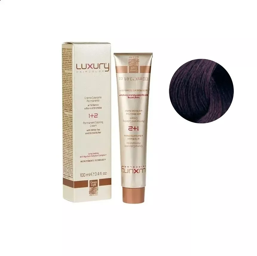 5/2 Світло-коричневий фіолетовий Крем-фарба для волосся з білим чаєм та екстрактом орхідеї, 100 мл LUXURY Haircolor GREEN LIGHT
