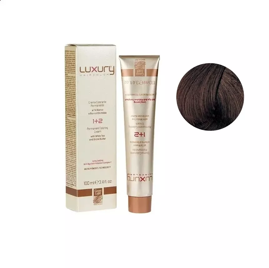 4/003 Середньо-коричневий  натуральний теплий Крем-фарба для волосся з білим чаєм та екстрактом орхідеї, 100 мл LUXURY Haircolor GREEN LIGHT