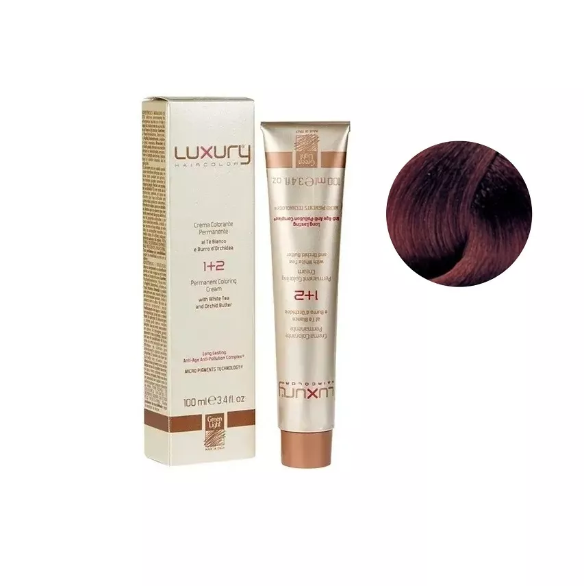 5/4 Світло-коричневий мідний Крем-фарба для волосся з білим чаєм та екстрактом орхідеї, 100 мл LUXURY Haircolor GREEN LIGHT