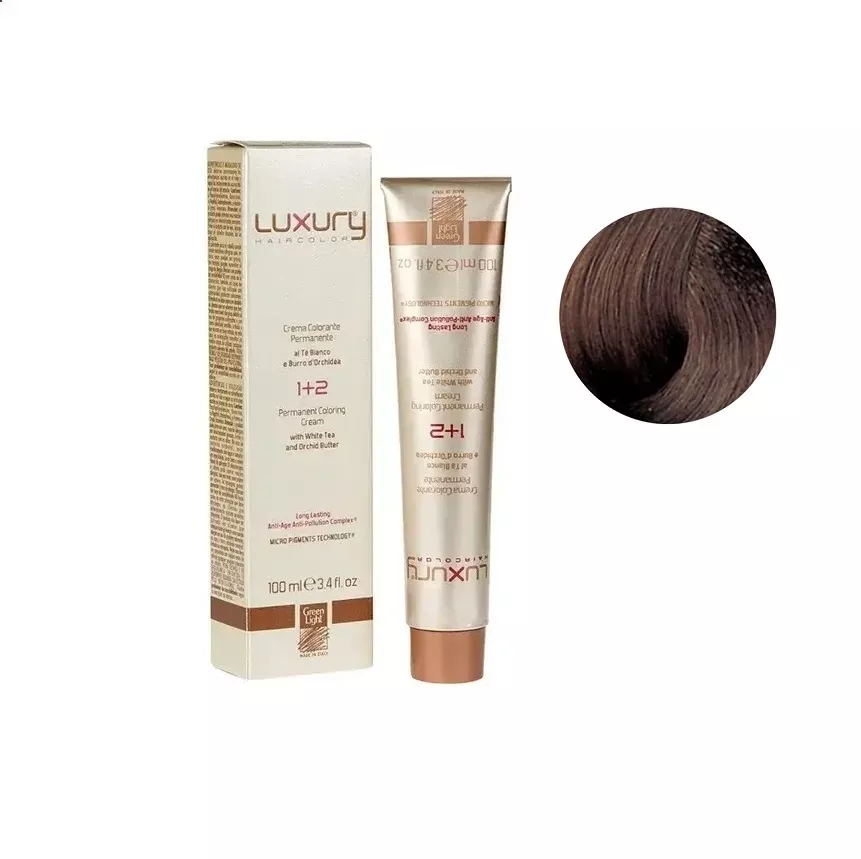 5/8 Світло-коричневий шоколадний Крем-фарба для волосся з білим чаєм та екстрактом орхідеї, 100 мл LUXURY Haircolor GREEN LIGHT