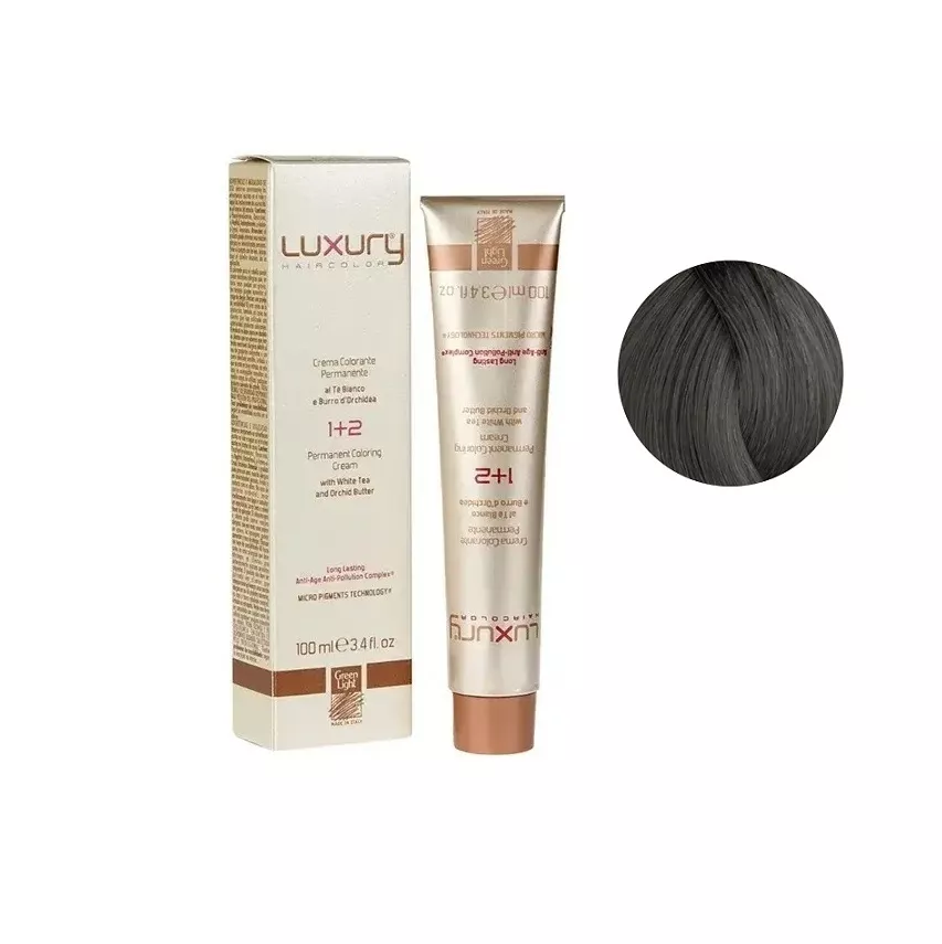 6/111 Темний блондин попелястий екстра інтенсивний Крем-фарба для волосся з білим чаєм та екстрактом орхідеї, 100 мл LUXURY Haircolor GREEN LIGHT