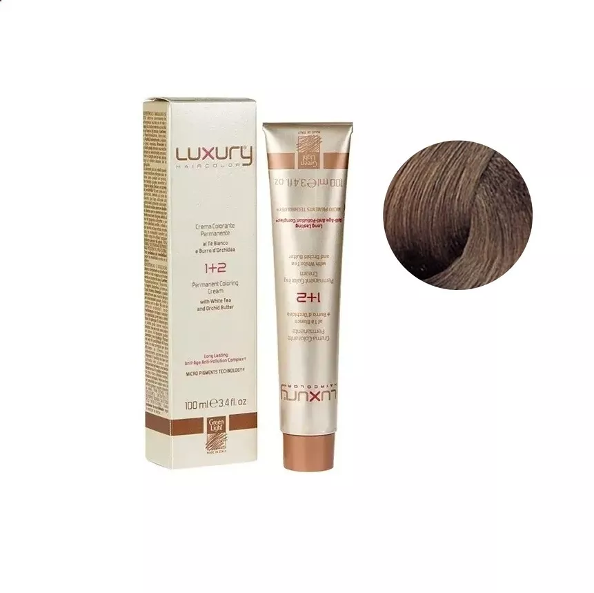 6 Темний блондин Крем-фарба для волосся з білим чаєм та екстрактом орхідеї, 100 мл LUXURY Haircolor GREEN LIGHT