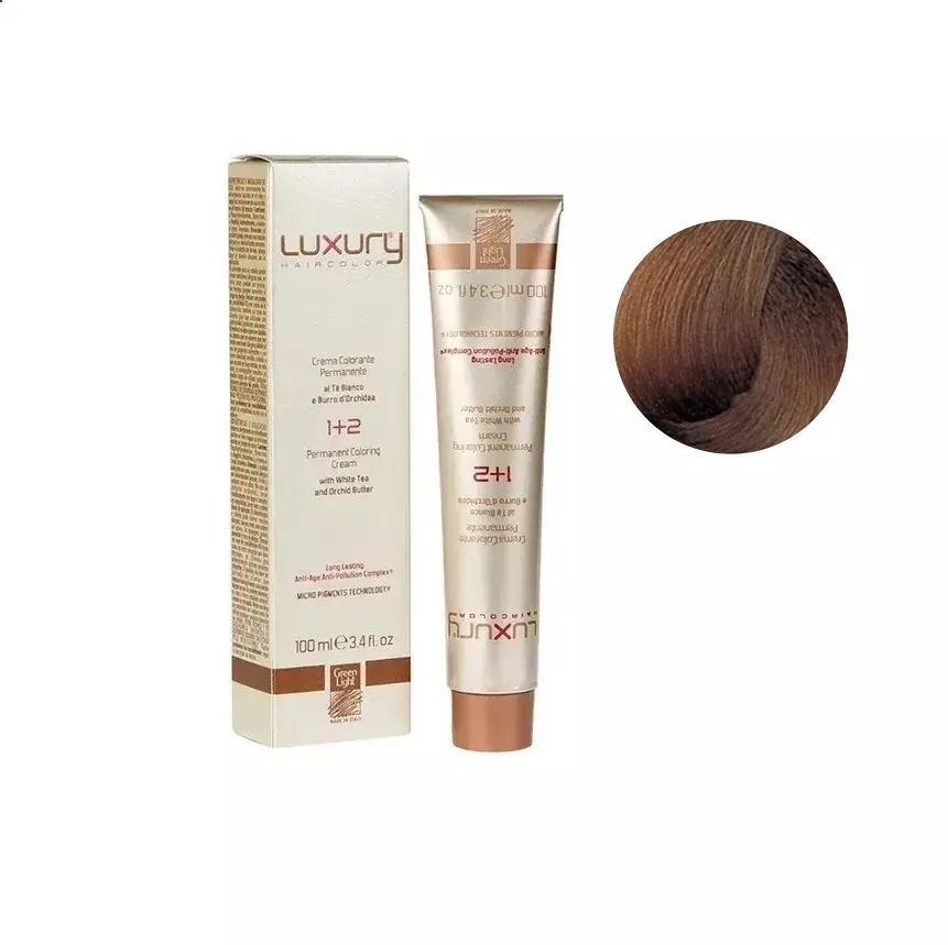 7/33 Середній блондин золостий інтенсивний Крем-фарба для волосся з білим чаєм та екстрактом орхідеї, 100 мл LUXURY Haircolor GREEN LIGHT