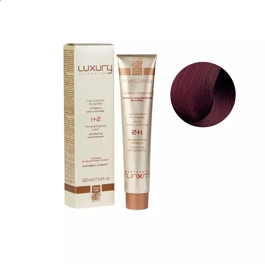 7/5 Середній блондин махагоновий Крем-фарба для волосся з білим чаєм та екстрактом орхідеї, 100 мл LUXURY Haircolor GREEN LIGHT