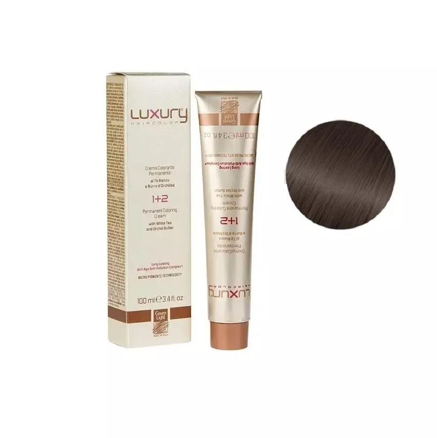 5/4 Світло-коричневий мідний Крем-фарба для волосся з білим чаєм та екстрактом орхідеї, 100 мл LUXURY Haircolor GREEN LIGHT