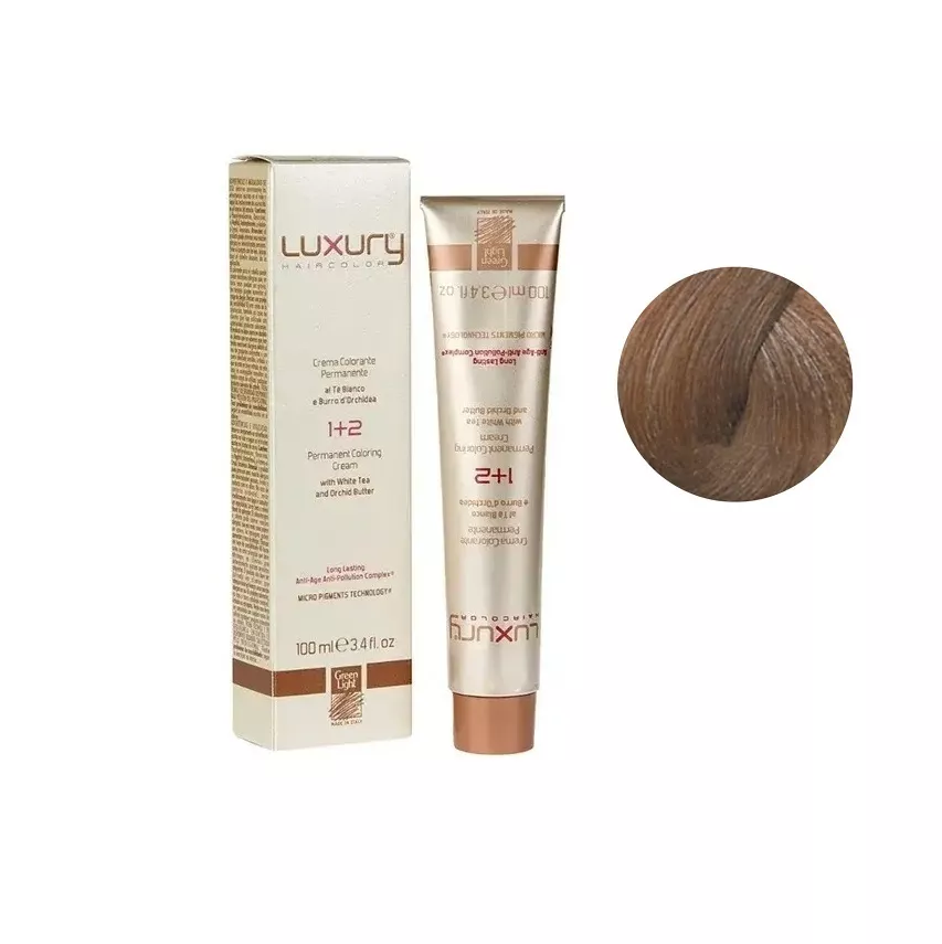 8/003 Світлий блондин натуральний теплий Крем-фарба для волосся з білим чаєм та екстрактом орхідеї, 100 мл LUXURY Haircolor GREEN LIGHT