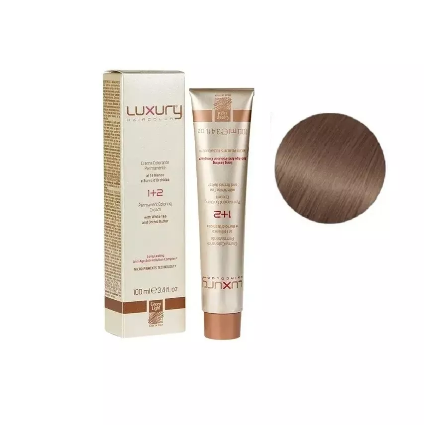 8/7 Світлий блондин коричневий Крем-фарба для волосся з білим чаєм та екстрактом орхідеї, 100 мл LUXURY Haircolor GREEN LIGHT