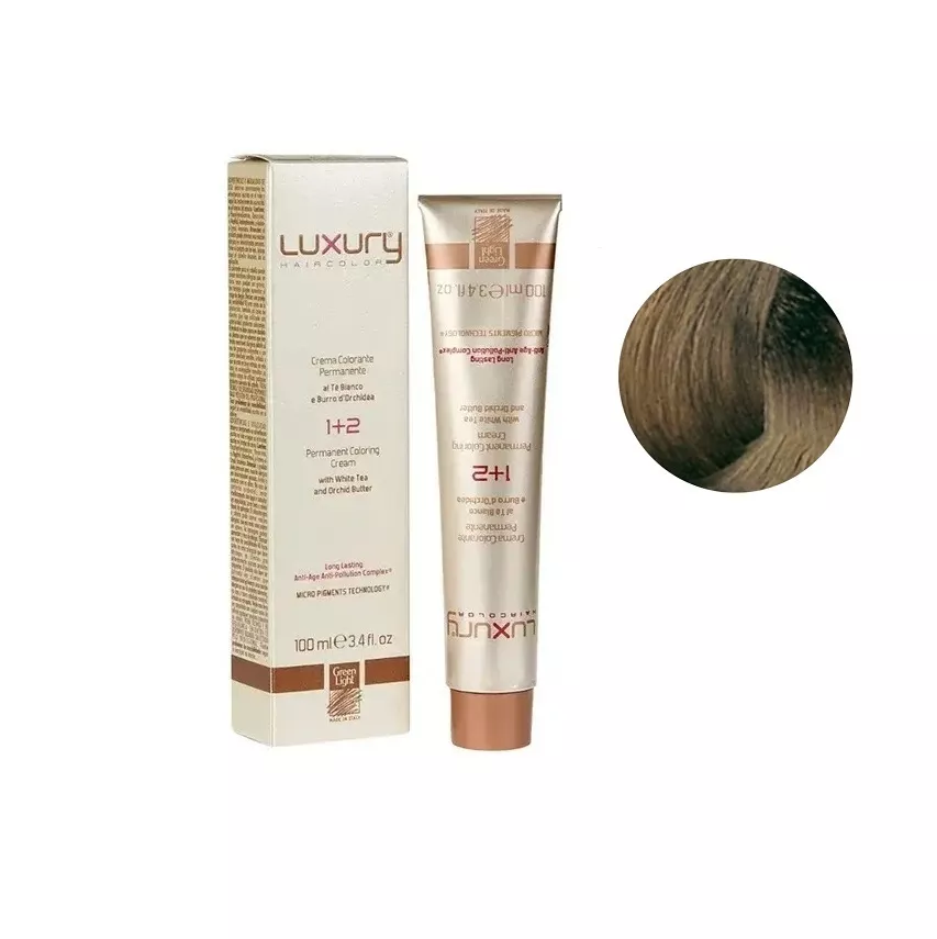 6/111 Темний блондин попелястий екстра інтенсивний Крем-фарба для волосся з білим чаєм та екстрактом орхідеї, 100 мл LUXURY Haircolor GREEN LIGHT