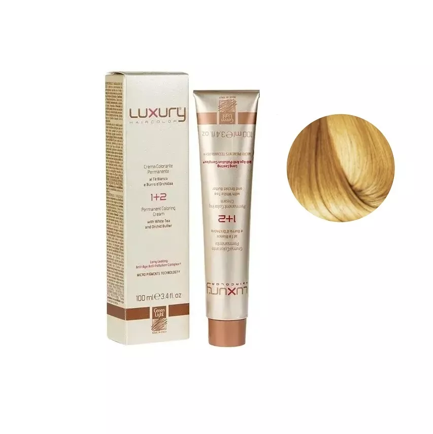 9/33 Дуже світлий блондин золотистий інтесивний Крем-фарба для волосся з білим чаєм та екстрактом орхідеї, 100 мл LUXURY Haircolor GREEN LIGHT