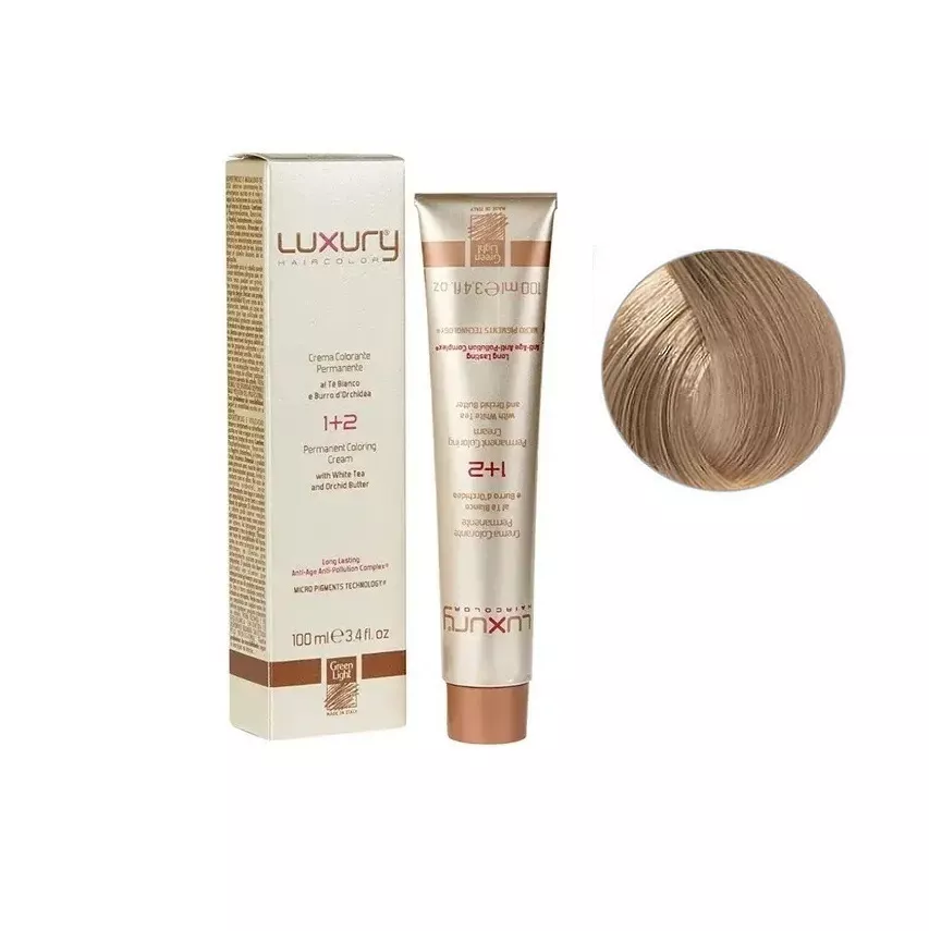 9 Дуже світлий блондин Крем-фарба для волосся з білим чаєм та екстрактом орхідеї, 100 мл LUXURY Haircolor GREEN LIGHT