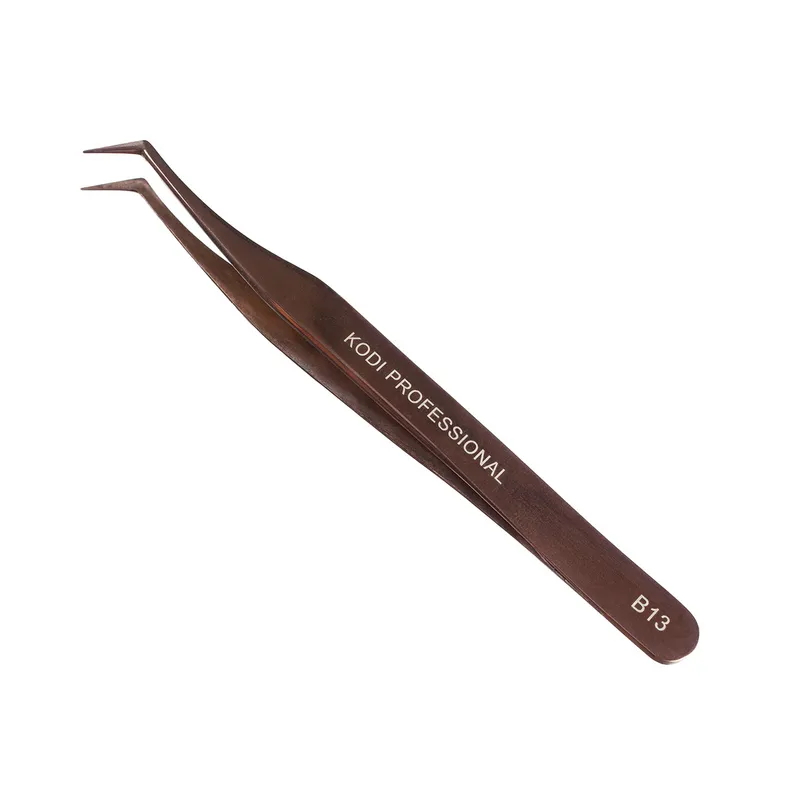 Пінцет B13 рекомендований для виконання нарощування вій в об`ємних техніках, може використовуватися в якості додаткового інструменту при інших техніках або маніпуляціях. Форма пінцета дозволяє зручно моделювати пучок будь-яким методом. Інструмент має повноцінне щільне змикання робочих стулок, а легкий хід дозволяє рукам уникнути втоми при тривалій процедурі. Пінцет виготовлений з високопробної сталі, колір - темне золото.ПІНЦЕТ ДЛЯ НАРОЩУВАННЯ ВІЙ B13