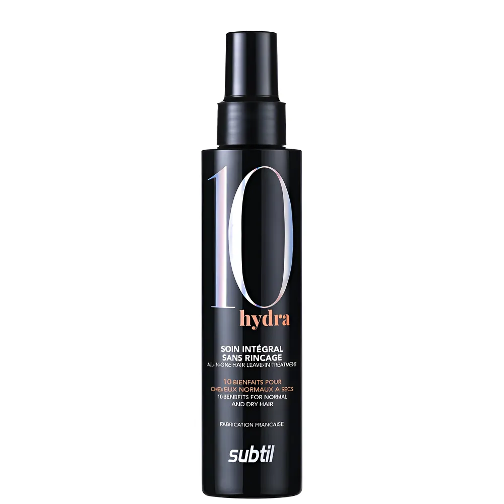 10 HYDRA – комплексний догляд 10 в 1 з миттевою зволожувальною дією для нормального та сухого волосся. Ідеально підходить для натурального волосся та легкого сушіння феном. Засіб поєднує в собі ефективність маски, швидкість незмивного засобу та практичність універсального засобу. Має аромат з такими нотами - фруктові, квіткові, мускусні та ванільні. Його можна брати з собою всюди для глибокого догляду всього за кілька секунд. Цей багатофункціональний засіб задовольняє 10 потреб нормального та сухого волосся за один крок: Застосування: Спрей-догляд комплексний 10 в 1 для нормального та сухого волосся, 150 мл Soin Integral 10 HYDRA Subtil Підходить для щоденного використання та можна використовувати як на вологому, так і на сухому волоссі. Всього кілька розпилень, і готово! Не змивати. Волосся захищене та легко укладається, без обтяження.Спрей-догляд комплексний 10 в 1 для нормального та сухого волосся Soin Integral 10 HYDRA Subtil