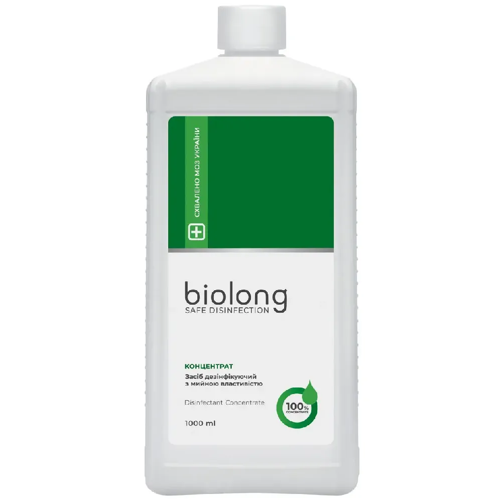 БіоЛонг 100% — концентрат для приготування робочих розчинів для дезінфекції інструментів. Не забувайте, що застосовувані засоби для дезінфекції потрібно чергувати кожні пів року. Склад: БіоЛонг 100% призначений для дезінфекції перукарського, манікюрного, педикюрного та іншого косметологічного інструменту, Властивості: Застосування Біолонг "Концентрат": засіб використовується лише у робочих розчинах. Сумісність із матеріалами: не ушкоджує вироби із сплавів металів, пластмаси, нержавіючої сталі, лакофарбових покриттів,БіоЛонг Концентрат "М" 100%