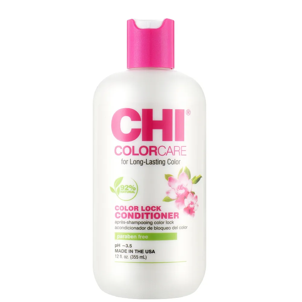 Кондиціонер для захисту кольору Color Lock Conditioner має низький рівень кислотності, завдяки чому ефективно закриває кутикулу після кожного миття шампунем, та надійно запечатує пігмент всередині. Не містить парабенів. Активні компоненти: Особливості продукту: Застосування: нанесіть велику кількість кондиціонера на чисте вологе волосся від коренів до кінчиків, залиште на одну-дві хвилини. Ретельно промийте та укладіть, як зазвичай. Для досягнення найкращих результатів використовуйте з шампунем Color Lock Shampoo ColorCare CHI.Кондиціонер для стійкості кольору фарбованого волосся з протеїнами шовку Color Lock Conditioner ColorCare CHI